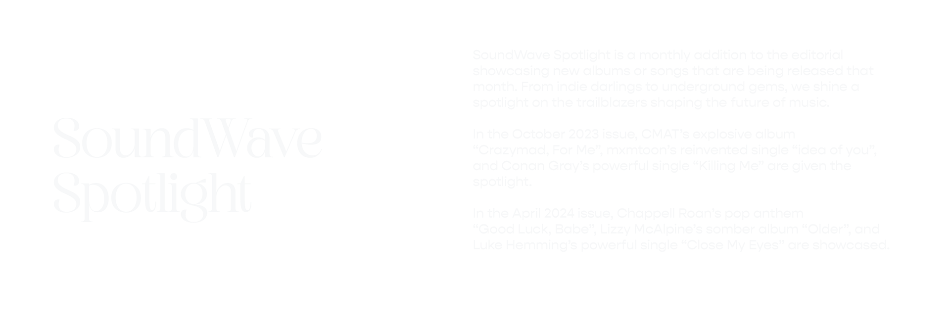 Magazine & spotlight text by Dork Magazine and Rolling Stone